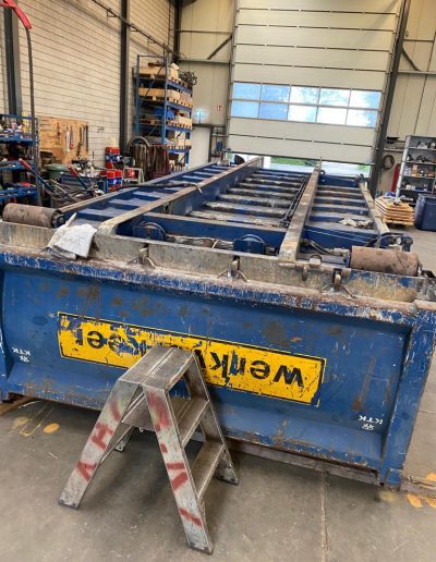 Voor de Timmerhuis Groep hebben wij deze container compleet gereviseerd. Daarbij is het plaatwerk vervangen, hydrauliek aangepast en vervangen, aluminium klep vervangen en na het spuit is hij weer volledig opgebouwd.